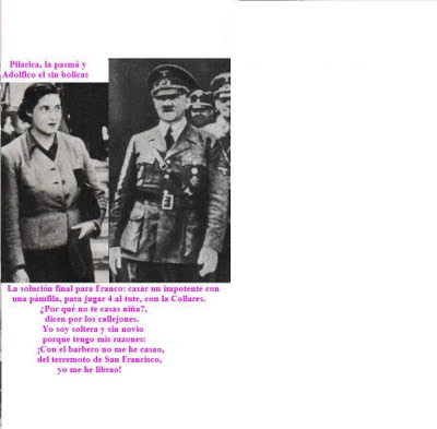 El resoluto Frasquillo decidió casar a la virgen Pilar Primo de Rivera -pila bautismal de aquella Sección Femenina que enseñaba a hacer potajes y zurcidos a las damiselas ibéricas si querían casarse, respirar o ir a Andorra- con Adolfito Hitler, en 1941.