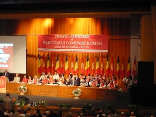En resumen, y ahora me extenderé sobre los detalles, los discursos fueron diversos e interesantes, y algunos muy emotivos, algo lógico que suele suceder cuando lo que se dice es producto de la mas cruda realidad, en este caso, del desatre producido en Rumania durante estos últimos 20 años. Sin embargo, y a pesar de lo positivo que es que se recupere la palabra "comunista" como etiqueta de un partido actual, y que éste acontecimiento salga en la televisión (aunque con la clásica propaganda en su contra), de programa se habló poco y, sobre todo, de un programa realmente socialista, marxista-leninista, donde la lucha de clases sea el motor de la acción política y social, y la burguesía sea el enemigo a destruir.