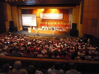 La primera impresión que me llevé fue la gran cantidad de asistentes, unos 400, muy superior a lo que esperaba, teniendo en cuenta la mala imagen que se ha construido del comunismo por los medios de comunicación desde el golpe de estado de diciembre de 1989. También me llamó la atención que no se trataba de una reunion de "viejos nostálgicos", expresión con la que se suele definir a los mayores que dicen a viva voz lo que la mayoria piensan: que antes se vivia mucho mejor que ahora, no sólo desde el punto de vista del respeto al hombre total (al trabajador, a su ocio, a su cultura, a su deporte, a su descanso, ect..), sino también en cuanto a bienestar material para la mayoria de los ciudadanos. En el Congreso habia una sorprendente cantidad de jóvenes, lo que es una buena noticia sin duda.